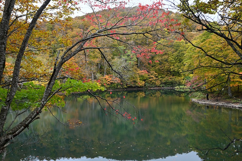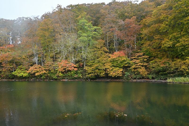 山形蔵王中央高原の紅葉 2025年10月14日本日のかよう会は、山形蔵王へ遠征。エコーライン経由で、蔵王中央ロープウェーで鳥兜駅へ。ちょうど10人いたので、団体割引で、往復2200円でした。 鳥兜駅から下り、ドッコ沼へ向かいます。紅葉の真っ盛り。沼を半周。水面に映る紅葉に歓声。 そこから、片貝沼を目指します。紅葉の自動車道路を登り、山道に入り、五郎岳へ。三角点のある五郎岳山頂で休憩。三等三角点です。 分岐点に戻り、うつぼ沼を経て片貝沼へ。道中見事な紅葉に浸りながら、11時半に片貝沼に到着。昼食です。 そののち、紅葉峠を経て、鳥兜駅に戻り、12:40の下り便で下山。雨にも会わず、紅葉の道を歩いた一日でした。惜しむらくは、陽ざしがなかったことでした。 下山後、笹谷トンネル経由で遠刈田に戻りました。