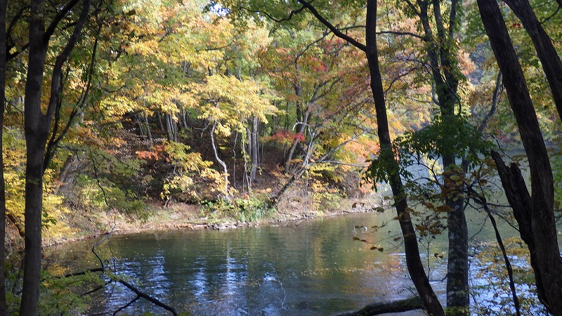 長老湖の紅葉と蕎麦 2025年11月4日かよう会は、長老湖の紅葉見物と七ヶ宿町の蕎麦昼食となりました。 やまびこ吊橋駐車場に9時50分集合。ここから長老湖まで約1kmを歩きます。黄色の葉が多くて、赤が少ない。そんな印象を持ちながら橋を渡り、坂を上ります。 長老湖畔は紅葉です。1周コースを歩き、今年の特徴を考えます。ブナの実とドングリが落ちていません。赤いのはメグスリノ木。快晴です。 七ヶ宿の「街おこし協力隊」が売店を出していました。 やまびこ吊橋を渡り、駐車場へ。それから七ヶ宿の蕎麦屋へ向かいます。まるいちさんはお休み。芭蕉庵さんで新そばをいただきました。大変混んでいました。そういう季節なのでしょう。 それから遠刈田へ戻りました。雲が出始めましたが、紅葉見物には最高の天気でした。