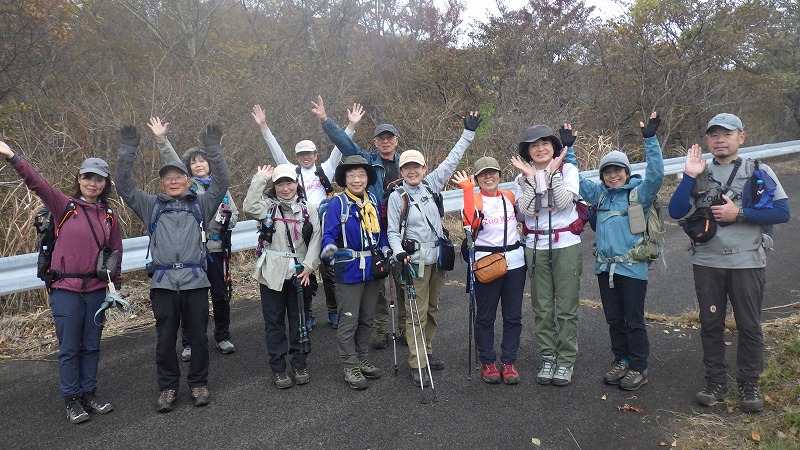 青麻山縦走 2025年11月9日蔵王古道の会が主催する、青麻山縦走のイベントが行われました。青麻山には西面に登山道が荒れて歩けなかったのを、6年ほど前に登山道を復活させました。これは奈良平安時代に蔵王の山を開いた修験道の山伏が御峰修行の出発点として歩いた道と伝えられています。 朝ございんホール集合。参加者29名とスタッフ10名が下別当登山口に。ここから歩き始め、西側の北原尾登山口駐車場へ歩きます。今年は、サポートの役割で歩きませんでした。 紅葉真っただ中の下別当登山口をスタート、青麻山、あけら山、七五郎山を経由して、展望台で昼食。西側の登山道を下山し、北原尾駐車場までの5時間半のコースです。 今回は全員が完走していただきました。北原尾からマイクロバスとサポートカーでございんホールに戻り、イベントを終えました。