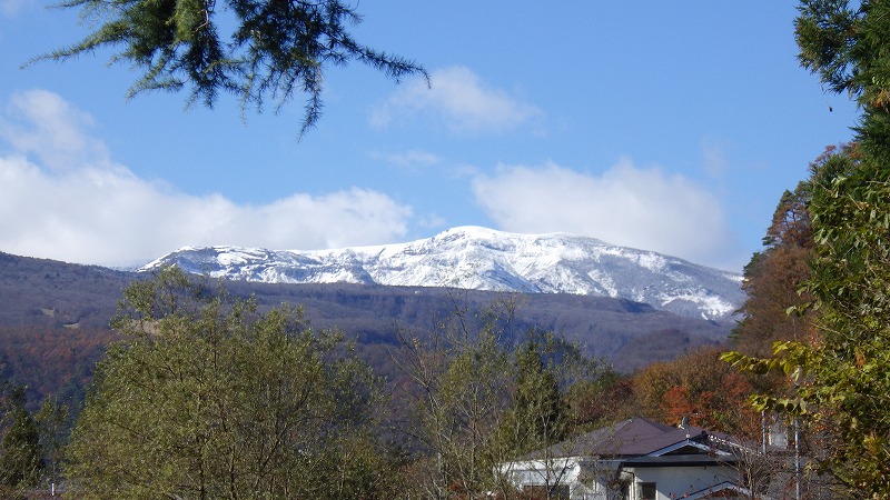 遠刈田の紅葉と雪 2025年11月13日紅葉は遠刈田にも降りています。刈田嶺神社のモミジとイチョウの対比が見事です。また、山には雪。熊野岳は真っ白。屏風岳も白くなりつつあります。 家の周りは、もう落葉です。グリーンカーテンのネットも外して、冬の準備です。