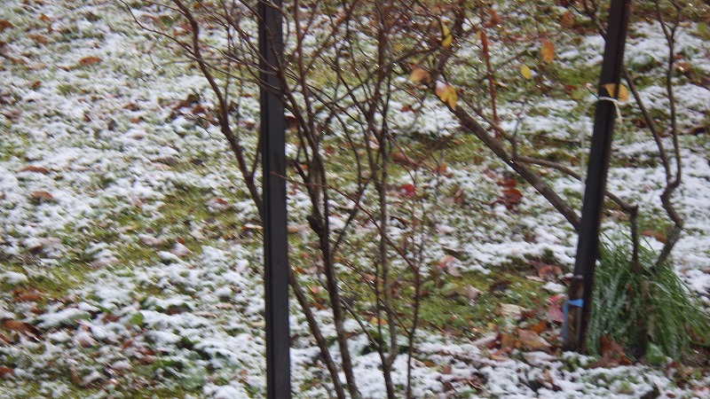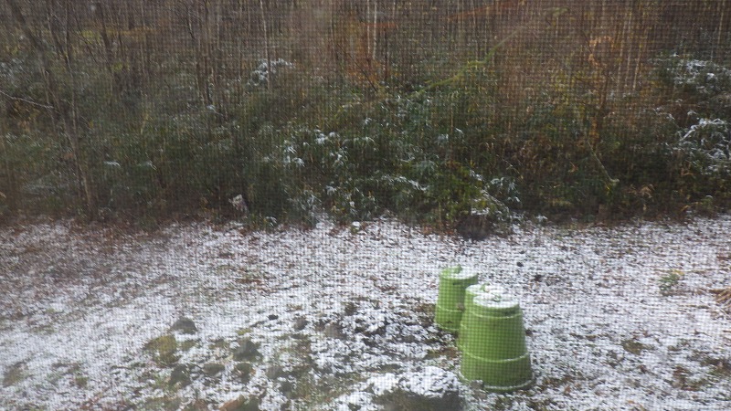 初雪 2025年11月19日朝起きると、庭が真っ白。初雪です。いよいよ古将軍の到来です。 昼頃にはとけてなくなりましたが・・・。