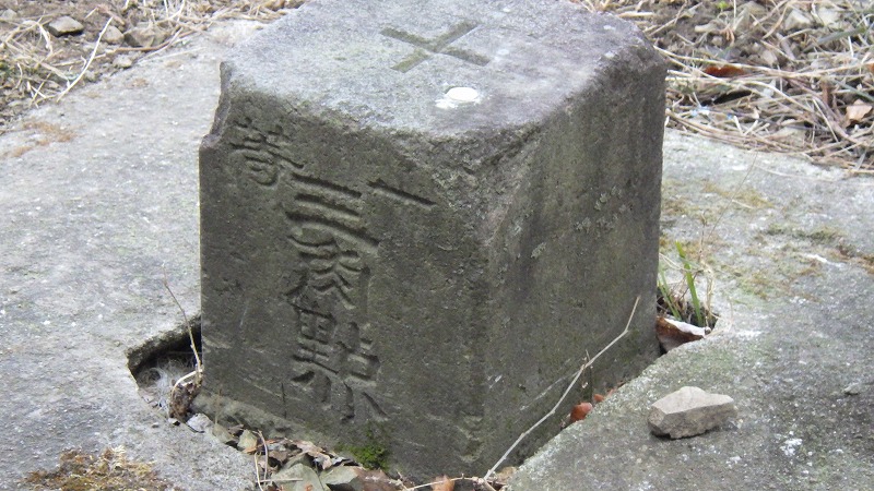 下山後に知ったのですが、この三角点は、昭和19年に移転されて作られたようです。その前は四方山に明治25年9月7日に設置されその時の点名は「四方山」になっていたようです。一等三角点は、明治期の測量の基本になった点なので、こういうケースは聞いたことがありません。これについてのいきさつはよくわかりませんが、あるコメントによると、第2次世界大戦末期の昭和19年には四方山に高射砲陣地がつくられたことと関係があるかもしれない、とありました。地図は、国防の資料という、当時の、陸軍陸地測量部が管理していたことと関係があるかもしれません。当地の歴史探索者の研究を望みたいと思います。