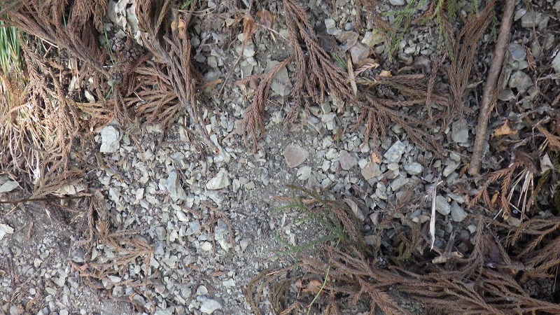 12時に出発し夜討峠に登り返し北上。三角点のある閑居山を通過し、愛宕沢に下ります。途中は右に左に崖です。滑りやすい狭い下りの道の連続を下り、愛宕沢に1時半。そこから中央公民館に下り、2時に到着しました。