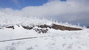 途中、ギアの故障などのための休憩をはさみ、中央コースを進み、縞の沢に11時。ここから中央コースの刈田岳直登コースを進みます。この時期にしては、全く風がありません。途中休憩をはさみながら、避難小屋に11時50分。山頂の神社に12時に到着しました。