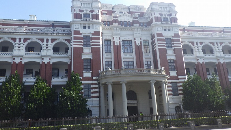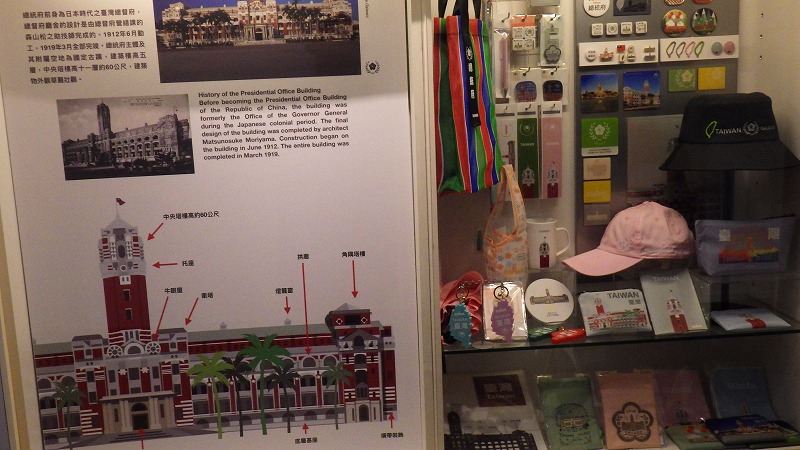 目の前のスーパーを覗いた後、総督府に行くことにしました。歩いて総督府に着きましたが、午前中の見学時間ぎりぎり。この建物は、日清戦争後日本の領土となった台湾を統治するために建てられた建物。これを修理して使っているようです。なかなか立派な建物で、威厳があります。現在は1階を見学スペースにしていて、時間を決めて入れるようになっています。が、警備は厳重で、パスポートのチェック、所持品検査を経て入ります。入り口には憲兵が。中では案内人が多数おり、展示物がいろいろあります。お土産売り場もあります。