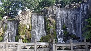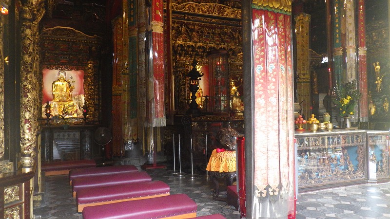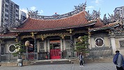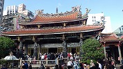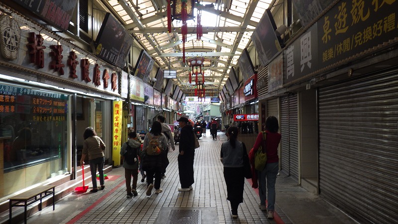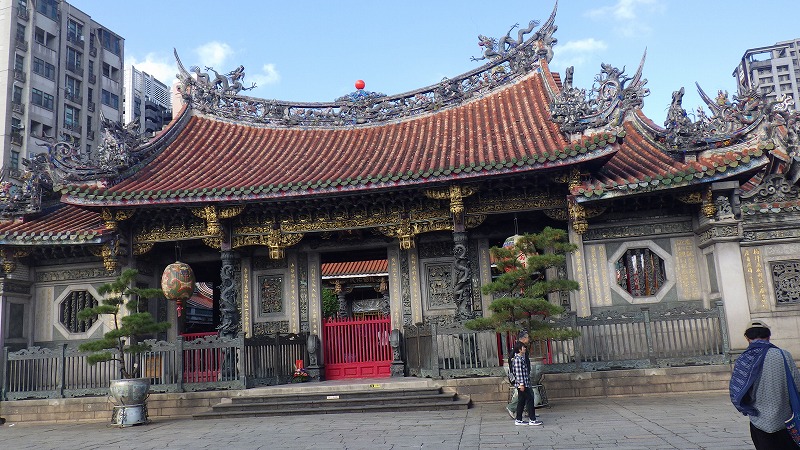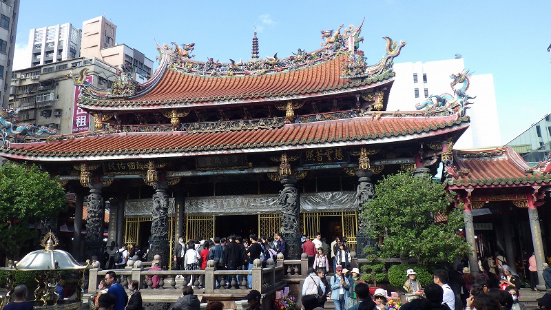 次の龍山寺を見ることにして、歩いて移動。旧日本人の建物などを経て、途中昼食。台湾式のスープ麺でした。龍山寺は立派な建物で、多数の参詣者がいました。流れる滝も立派ですが、建物も風格があります。お参りする人がたくさん列を作っていました。お寺を出て、隣の夜市をぶらぶら。どういうわけかマッサージ屋さんがたくさん集まっていました。