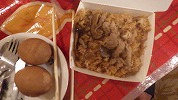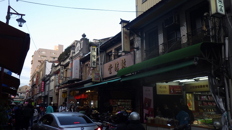 一休みしてから、宿の近くの永楽市場、迪化街に行きました。永楽市場は今日は休みらしいのですが、布の取引をする店が集まっているようです。迪化街は古い街のようで、細い通りの両側にびっしりいろいろな種類の店が並んでいます。食材屋が多いように見えました。名物らしいおこわを買って夕食にしました。