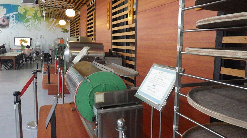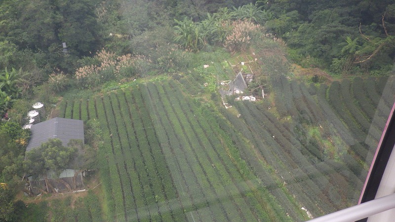 このロープウェー、水平距離約4㎞、上ったり下りたりしながら標高差270Mほどを20分以上かけて進みます。終点で降りると、そこは茶の産地に茶店が点々としています。20分ほど歩くと天恩宮という寺院。さらに進むと台北市の鉄観音茶などの紹介施設、茶の製造に用いる器械の展示や紹介ビデオ、いろいろな茶の見本などがあり、実際の鉄観音茶を飲ませてもらいました。
