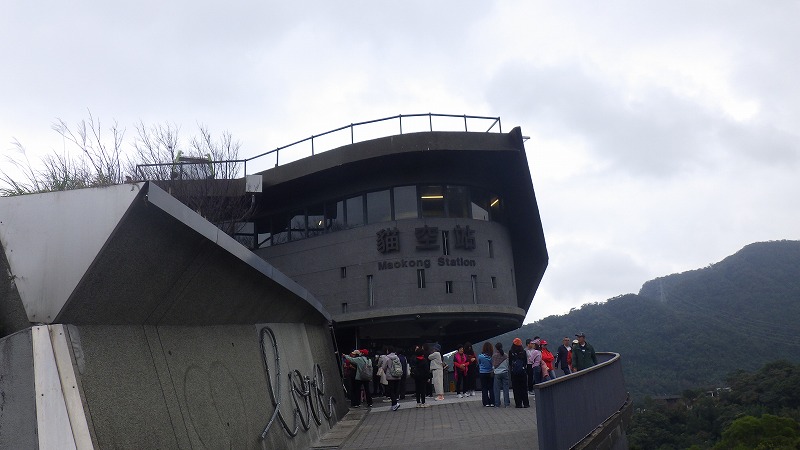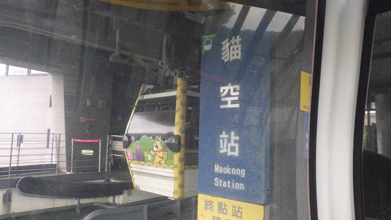 今日は、台北市の山間部・鉄観音茶の産地へ、ロープウェーの旅。MRTを乗り換えて、ブラウンラインのBR01の動物園駅へ。ここでロープウェーに乗り換え猫(本当は豸に苗)空と書き「マオコン」と読む終点へ。(以下猫空と書きます。この国は、繁体字を使っているので、JISに登録されていない漢字があります)一日券300T$(約1500円)で往復できます。途中の2つの駅でも乗り降り可能。