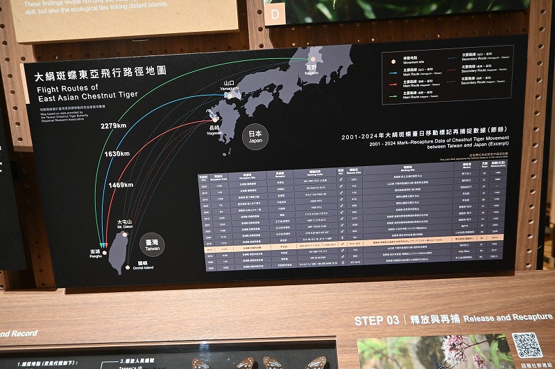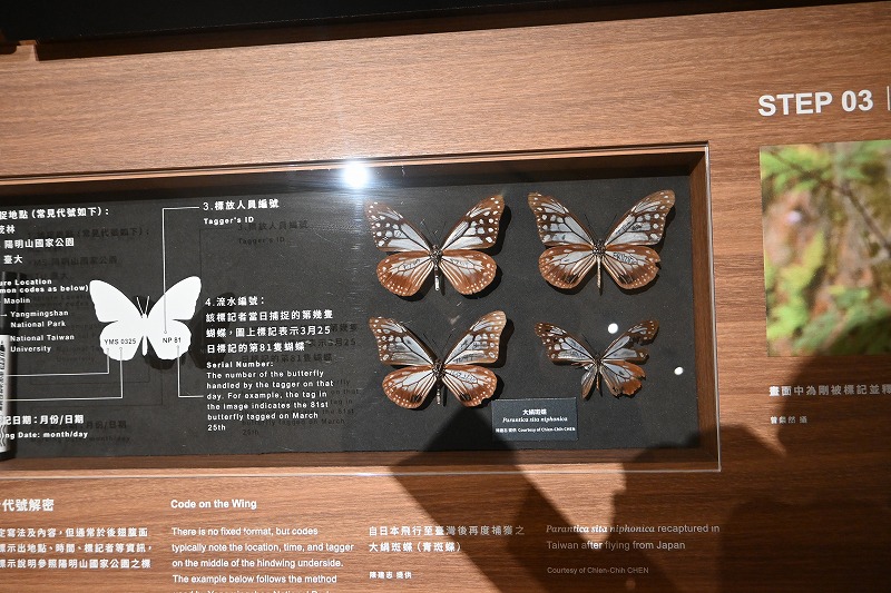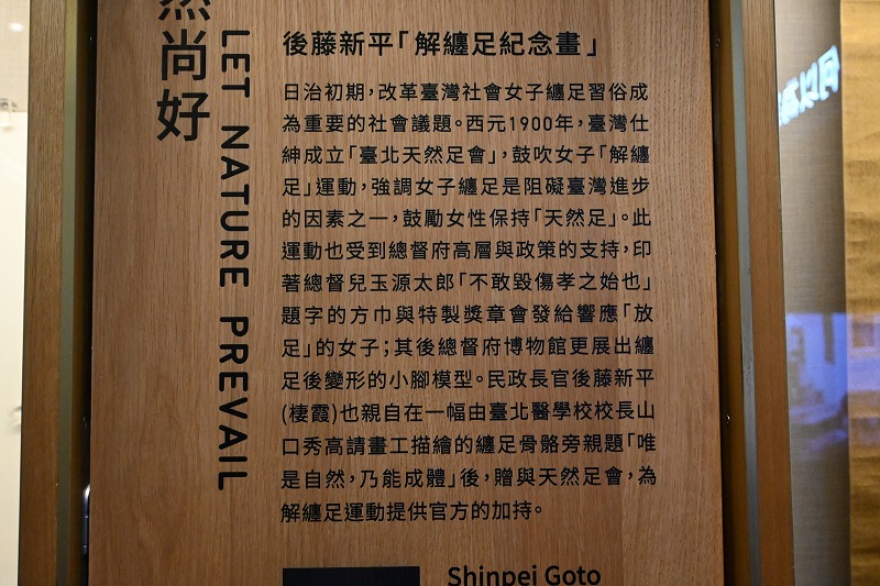 展示物の中に、アサギマダラを見つけました。解説によると、長野から飛んできている、とのことですが、宮城にいるアサギマダラも、台湾に来ているかもしれません。この地で見られたことはうれしかったです。また、後藤新平による纏足禁止が行われる、自然科学に日本人学者が貢献したなども展示されていました。