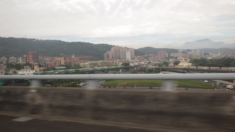来るときは真っ暗で何も見えず、高速を走っているな、としか感じませんでしたが、道路は広く、多数の車が走っています。遠くに山が見え、台北が盆地にある都市だと感じます。空港までは渋滞もなくすんなりと。都心に向かう方は所々で渋滞していました。