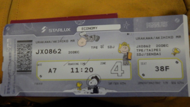 選んだのは、仙台空港を17時20分発、台北着が20時35分、1時間時差がありますので4時間15分のフライトです。