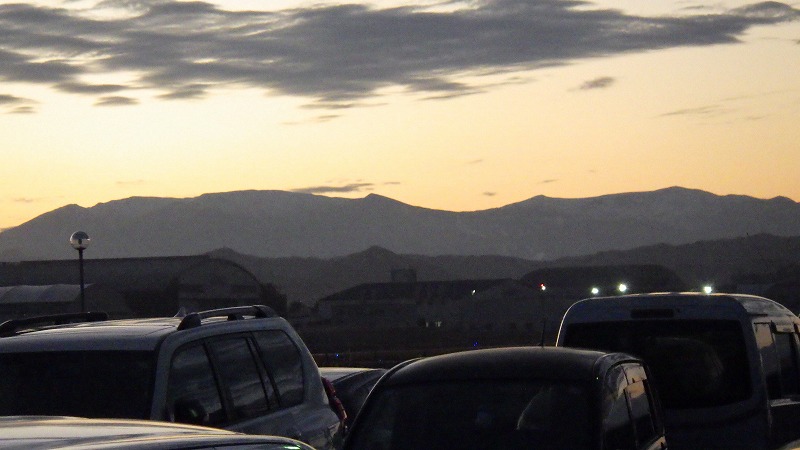 この日の遠刈田は、前日夜のうちに雪が積もった状態。昼過ぎに家を出て仙台空港に1時間で着き、待っているうちに夕暮れ。暗い中での離陸となりました。