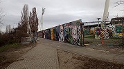 次に訪れたのは、「壁公園」。Maouerparkというのが地元の名ですが、ベルリンの壁が百m以上に渡って残されています。とても乗り越えられる高さではありません。落書きがいっぱい。中にはとても上手なものもありました。
