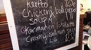 マーケット広場に戻ると、いくつかテントの売店が出ていました。ここで木彫りのコップ(Kuksaという)を購入。日本で買うと高いのですが安く手に入りました。そして船着き場にたたずむいい雰囲気の建物オールドマーケットホールの中にある、soup+moreというスープ屋さんで昼食。