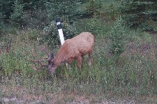 山道に入り10分くらいで道の途中にエルクやマウンテンゴート(ヤギ)がえさを食べている。