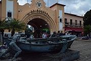 街に降りると、まず、ラブラドーレス市場に行きます。ここには、花や野菜や果物、魚や肉、土産物、洋服といったいろいろなものを売る店が入っていて、南国の香りがします。歴史があるようで、古い時代のタイル画があります。1640年と書かれています。
