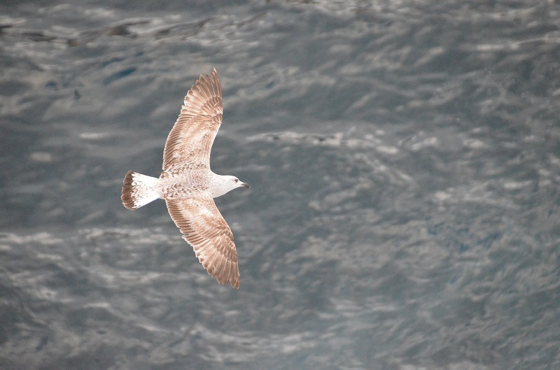 時間になったので、歩いて船に戻ります。夕方、5時に出港。花いっぱいの南国の島を後にしました。たくさんのカモメが船の周りを飛び交っています。よく見ると、2種類の鳥がいるようですが、そのうちインターネットに自由につなげるときに解明したいと思います。
