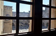 2重になった要塞からは、港に停泊しているファンタジアや闘牛場の丸い建物が見えました。ローマ時代の石碑や柱なども残っています。ちょうど、オレンジの花と実の季節で、いたるところに白い花を咲かせたオレンジの木が植えられています。