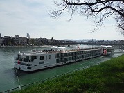 このライン川リバークルーズは、約200人の乗客を収容する、3階建ての船で行きます。「動く高級ホテル」といったツアーで、三食付き、バスツアー付きのちょっと贅沢なクルーズです。このコースは、スイスのバーゼルからライン川に沿ってアムステルダムまで7泊8日かけて下り、途中フランス、ドイツ、オランダの町を巡ります。