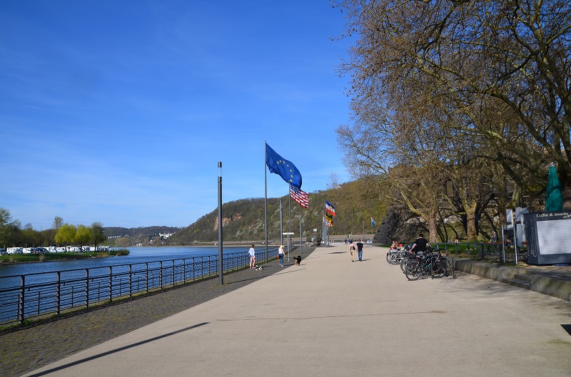 コブレンツに戻り、町を散策。ここには、オーストリア帝国の有名な宰相メッテルニッヒの生家などがあります。また、モーゼル川とライン川の合流地点でもあります。