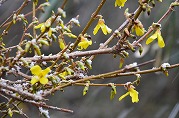 関東では、桜が満開だとかですが、こちらもようやく春になったなあと思ったら、今日は、雪です。牡丹雪で、積もることはありませんが、一時は、視界が悪くなるような降り方でした。散歩中の椿の木にも降ってきます。 それでも、いろいろな所に春の足音が聞こえます。 ようやく咲き始めたレンギョウやアセビ、そして、蕗の薹。柳の芽も出始めています。気の早い桜が花をつけていますが、大木の桜は、まだ蕾です。ネコヤナギも、モクレンももうすぐです。 2時間ほどで晴れました。 うちの庭にも、蔵王の名物、桃と梨の木を植えてみました。さて、どうなる事やら。