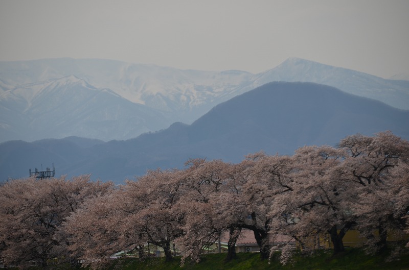 ついに、遠刈田の桜が見頃になりました。数日前には、ちらほら咲き始めていましたが、いよいよ、八分咲きから満開です。標高360mの松川サイクリングロード沿いの、一目千本桜が、盛りを迎えました。例年より早いそうです。 こけし橋のたもとから左岸上流の桜は、刈田岳、屏風岳の真っ白な山体を背景に、咲き誇っています。下流に行くと、右岸の桜並木の上に、屏風岳や不忘山。また、レンギョウやユキヤナギ、モクレンなども咲いています。 雁戸山を背景にした、蔵王こけし館前の桜は、もう少し。まだ蕾が多いです。 桜の花を食べに、メジロの群れが来ていました。 午後に出かけた大河原の千本桜。こちらは、前の土日が盛りだったようで、花吹雪の跡が見られ、淡い緑の葉も出てきました。しかし、まだ蔵王連峰を背景にした桜並木は、美しい。白い屏風岳、黒い青麻山を背景に、桜は咲き誇っています。こちらにも、ヒヨドリなどが桜の花を食べに集まっています。 ちょうど、東北本線の列車が通過しました。昔から、花見のこの時期には、徐行運転し、乗客に喜ばれていましたが、今年も行っているのでしょうか。 いよいよ、春の本番です。そして、今年の杉花粉の終焉も・・・・・。