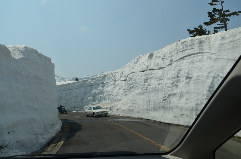 昨日、蔵王エコーラインが開通しました。今日から、ゴールデンウィークの始まりです。天気がよいので、混む前に行ってきました。5月8日まで、夜間通行止めで、ゲートは8時に開きます。8時過ぎに我が家を出て、エコーラインを登っていきました。 両側には、所によると、10mを超える雪の壁。今年は、2月の豪雪で、例年より多いそうです。9時前にレストハウスに着くと、まだ駐車場は余裕があります。 刈田岳山頂は、まだ雪が残っています。刈田嶺神社も雪の中。下から見ると真っ白な屏風岳方面は木が見えてきています。お釜は、水面は見えていません。熊野岳に行く稜線は、雪が溶けてきています。頂上直下の避難小屋も姿を現しています。残念ながら、朝日連峰は霞んでいて、見えませんでした。 1時間ほど景色を眺めて、下りました。次々と車が登ってきます。連休本番は、数珠つなぎになるそうですが、何となく想像できます。 帰りに、不動滝と三階滝の展望所から、滝を見てきました。融雪で、水量が多く、雄大な姿を見せていました。