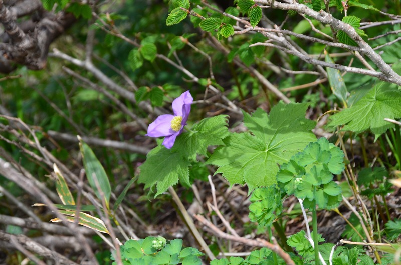 この数日、晴天が続き、夏を思わせるような天気が続いています。各地で30度を超え、ここ蔵王でも、夏の始まりを感じます。 今日は地元の人達と、南蔵王連峰の最南端、不忘山に登りました。 白石スキー場が出発地点。曇り空なのですが、風もなく蒸し暑い。 シロヤシオツツジや山ツツジなどが咲いています。 白石女子高小屋跡を経て、ぐんぐんと登って行きます。途中、タムシバやショウジョウバカマ、ミネザクラ、シラネアオイなどが次々に姿を見せます。 不忘の碑まで来ると、展望が開け、遠くに吾妻連峰、そして山頂が見えます。このあたりからは、ミヤマキンバイ、ユキワリコザクラ、ハクサンイチゲなどの高山植物が花盛り。スタートから3時間余りで山頂。 三角点のある、見晴らしのよい頂。遠くには飯豊連峰や朝日連峰の白い姿。墨絵のような山なみです。近くは、南屏風岳から北屏風岳の稜線、水引入道などのピークが見えています。山頂には、キアゲハの姿も見られました。