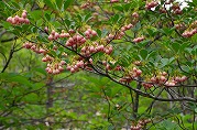 どうだんの森 2014年6月5日4月には、水芭蕉とカタクリでにぎわった白石市の「ミズバショウの森」ですが、その奥にある「どうだんの森」では、ツツジの仲間のサラサドウダンが見頃です。こちらは、木道が整備されており、快適に歩くことができます。 サラサドウダンは、今真っ盛り。早いものは、花が散り始めています。 レンゲツツジは盛りを過ぎていますが、少し残っています。オレンジ色の花が新緑の中に映えています。脱皮中のトカゲもいました。コバイケイソウは白い花をつけています。 また、オオカメノキの白い花、ヤマボウシの少し緑がかった白い花も咲いています。 秋の紅葉の時期が楽しみです。