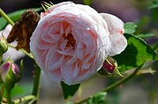 近くの七日原にある蔵王チーズ工場の薔薇園のバラが見頃です。 工場の敷地の一部に、いろいろな種類のバラが植えられています。中には、見頃を過ぎたものもありますが、色や大きさ、形などさまざまなものがあります。 色は、赤、白、黄色、ピンク、オレンジ、薄紫など、色とりどり。 また、大きな花、小さな花、房状の花などいろいろです。花びらが、いくつもあるものや、少ないものなど変化に富んでいます。 品種改良の結果、こうした多様なものができたのでしょうが、一口に、「バラ」でくくれないほどです。青空の下、遠く蔵王連峰を背景に、楽しんできました。