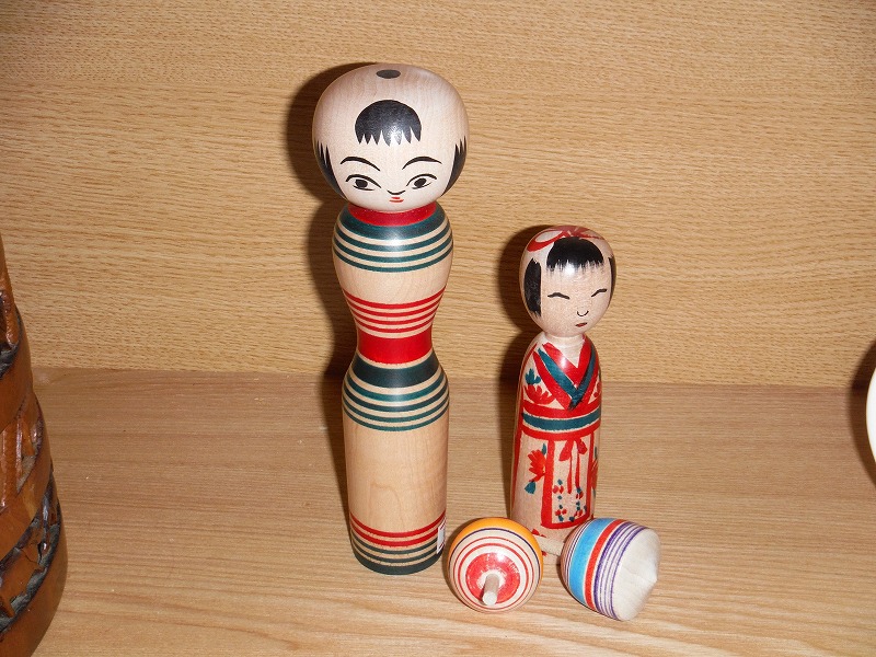 10月4日・5日と、遠刈田の宮城蔵王こけし館で、「第26回全国伝統こけしろくろまつり」が行われていましたので、行ってきました。こけし館の開設30周年だそうです。 いつもと違い、こけし館前には、ずらりとテントが並び、向かって右側のテントには、東北地方のこけしの11系統の工人さんが店を出し、いくつかの所では、こけし作りの実演をしていました。反対側のテントには、くじ引き、いろいろな売店、食べ物販売等並び賑やかです。こけし館は無料で開放されました。 館内では、フランス人の一行が、こけしの絵付けに挑戦中でした。 また、蔵王町の保育園児の塗り絵や、全ての小学4年生の絵付けしたこけしが展示され、優秀作品には賞が与えられていました。 宮城県全町村の花や物産にゆかりあるこけしが「花咲きこけし71」と言うタイトルで展示されていました。また、珍しい、インディゴ色のこけしもありました。 外のテントでは、昼時に、「芋煮」が無料でたっぷりと振る舞われました。 この機会に、なかなか手に入らない、南部系の煤孫盛造工人と木地山系の北山賢一工人 のこけしを購入し、我が家のささやかなコレクションに加えました。