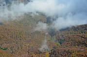 澄川の紅葉・蔵王に初雪 2014年10月28日今日は、長老湖の湖畔巡りの予定でしたが、行ってみるとひどい雨。 予定を変更して、天気がまだ持っている、蔵王自然の家の奥にある、澄川に紅葉を見に行きました。 野鳥の森のコゲラコースを歩き、澄川の下降点に行くと、対岸には岸壁の上に見事な紅葉が見られます。 川まで降りて、見上げると、素晴らしい景色が・・・。ただ、天気が今ひとつなので、輝く紅葉は見られません。 それでも、黄色や赤の紅葉をしばし見物しました。 家から車で5分少し、歩いて1時間でこういう所もあります。 蔵王に雪が降りました。エコーラインは通行止めだそうな。遠刈田から見えるえぼしスキー場には、白い雪が見えました。いよいよ、冬の到来です。