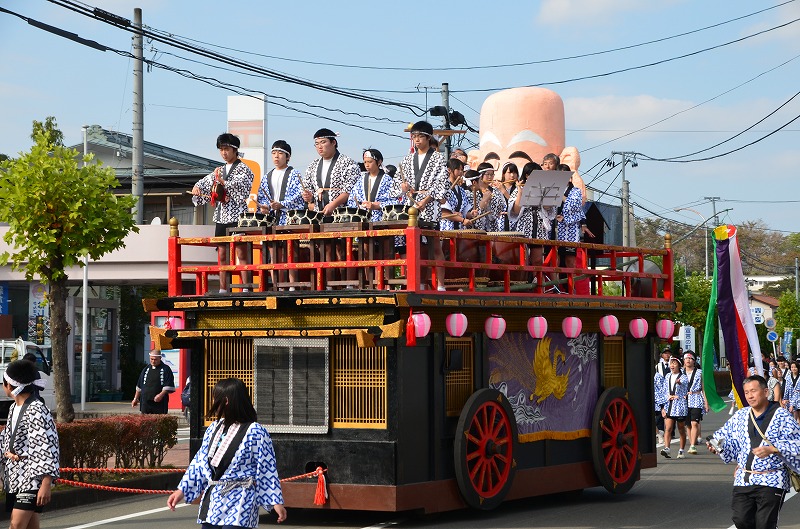 今日は、隣の村田町で行われた、「布袋まつり」に出かけました。 町は、おまつり気分が一杯。旗がかざられ、神輿と太鼓が練り歩き、獅子舞もいました。中央公民館前では、3台の山車が出番を待っていました。 村田は、蔵の町、みちのく宮城の小京都、というキャッチフレーズで売り出しています。江戸時代の蔵が並ぶ町並みが残っています。 午後1時20分、午後の部の山車の練り歩きスタート。七福神の仮装を先頭に、布袋を載せた山車が3台、大勢の人に引かれて町を回っています。 同時に、町にある白鳥神社のお祭りの日でもあるようで、神社の前は、出店が並び、境内に入ると、蛇藤と呼ばれる大きな藤や、直径が2m以上もあるケヤキ、イチョウの大木がありました。 道の駅にある、村田町歴史みらい館には、伝統芸能や村田の歴史が展示されていました。