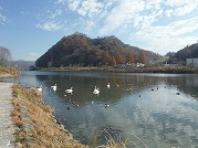 白石川の白鳥飛来地に、白鳥が来ているという話を聞いて、見に行ってきました。 白鳥の群れの本体は、刈り入れ後の水田に、落ち穂拾いに行っているようですが、子供を含めて数羽の白鳥が来ていました。 蔵王連峰は、主稜線が真っ白で、冬の装いです、