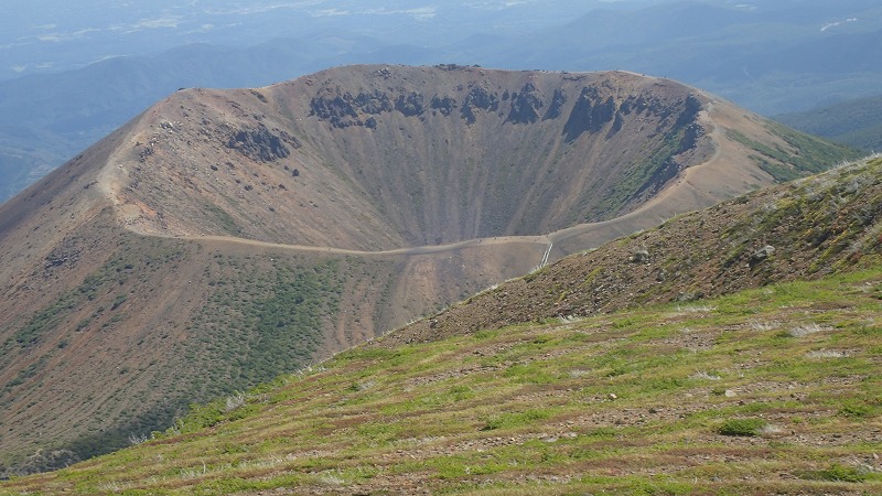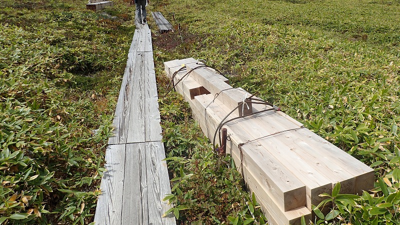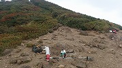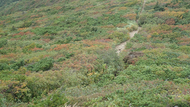 登山道整備 2017年9月11日宮城蔵王ガイド協会が9月に行っている、南蔵王の登山道整備に参加しました。 今日の分担は、刈田峠~前山。夕方用事があるため、こちらのコースに変えていただきました。南蔵王連峰の入り口、刈田峠駐車場から歩いて前山へ。ここから刈田峠めざして登山道の草刈りです。昨年から1シーズンで草、竹、そして木が登山道にかぶさっています。今回は、協会の刈り払い機を使用しました。 前山から始めて、刈田峠の小屋の手前までしか行けませんでしたが、6時間の奮闘で、歩きやすい道になったと思います。 山は、そろそろ紅葉の始まり。いくつかの木々は色づいてきました。