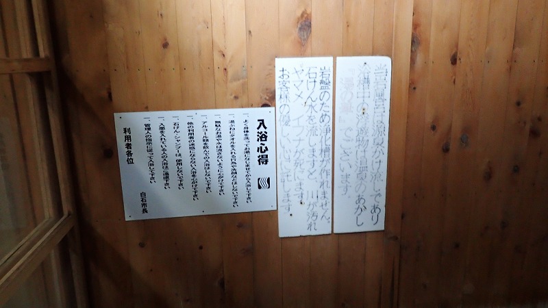 小原温泉かつらの湯 2018年3月14日白石に用事があったので、少し遠回りして、小原温泉のかつらの湯に寄りました。 この湯は、白石川のほとりにある、岩盤をくりぬいて作った温泉です。川のすぐそばにあります。入口で200円(安い!)払って、男湯に入ると、石の階段で下がるようになっています。周りは、岩盤をくりぬいた壁。岩で作られた湯ぶねに、少し熱めの湯が湯ぶねの底から沸いています。 浄化槽が作れないので、石鹸シャンプーは禁止。イワナ・ヤマメに優しい温泉です。長らく土砂で埋まっていたのを、平成16年に再建したと書かれていました。 「かつらの湯人生5訓」というのが張られていて、笑ってしまいました。なんと、60歳から人生が始まっています。 遊歩道の吊橋は通行止め。通れるようになってから、もう一度来たいところです。