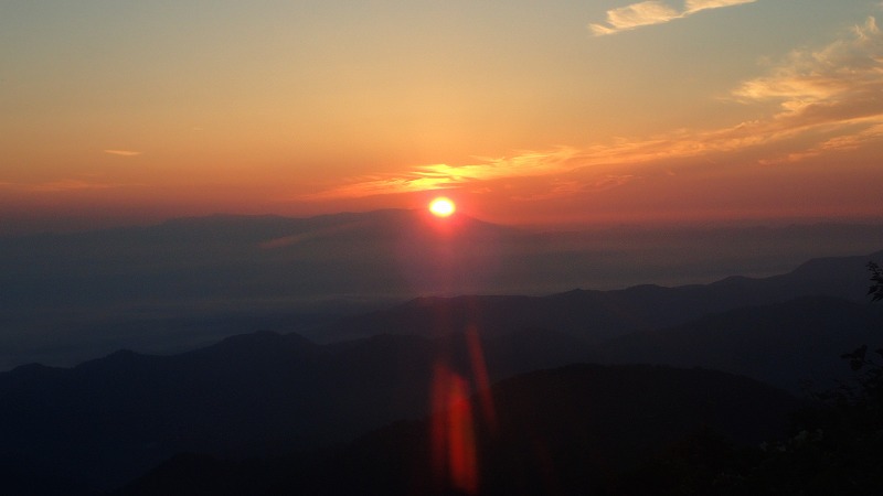夕焼け 2018年8月22日夕方、御山詣りのスタッフ会議が行われる遠刈田地区公民館に行くと、空には夕焼けが…。こんなにきれいな夕焼けは久しぶりのことでした。