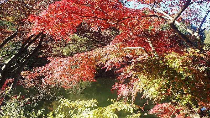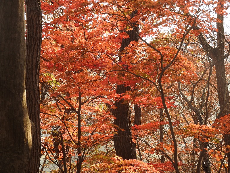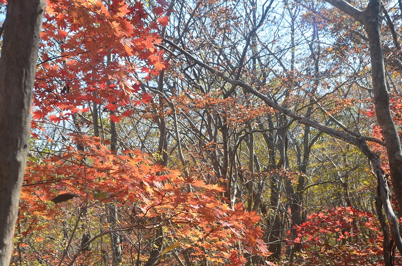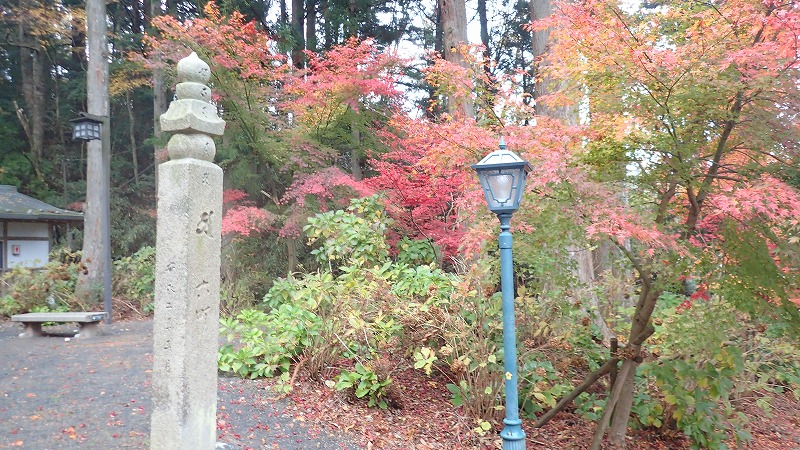 遠刈田公園の紅葉 2018年11月11日遠刈田公園は、モミジの木がたくさんあり、「紅葉の名所」と言ってもいいところです。ちょうどこの時期、紅葉真っ盛りです。 公園の中から、展望台に上る道筋、そこから、権現山の稜線を遠刈田温泉に下る山道、いずれも秋の盛りでした。紅葉の合間に、熊供養碑や遠刈田の刈田峰神社の古名、金峯山蔵王寺岳之坊の石碑などを垣間見ることもできます。
