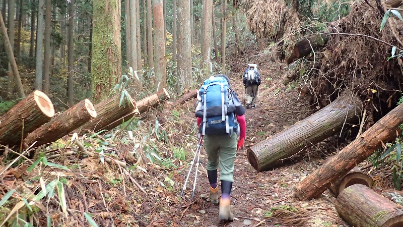 あけら山・青麻山への道 2018年11月2日9月以来、廃道になっていた青麻山の西側の登山道の復活作業をしてきましたが、いよいよ完成に近づきました。昨日は、懸案であった、あけら山の登山道の急なザレ場を回避する迂回路を設置しました。これにより、落石が心配だった道を迂回できるようになりました。 今日は、仕上げとして、道標の設置。2つのピークと3つの分岐点に道標を設置しました。これにより、青麻山の西側から4つの登山ルートが完成です。東側の2つの登山ルートと合わせて、東西いずれからも登り、下りることができるようになりました。 写真をご覧になるとわかるとおり、西側からの登山ルートも紅葉の真っ盛り。道の途中からは、蔵王連峰も望むことができます。