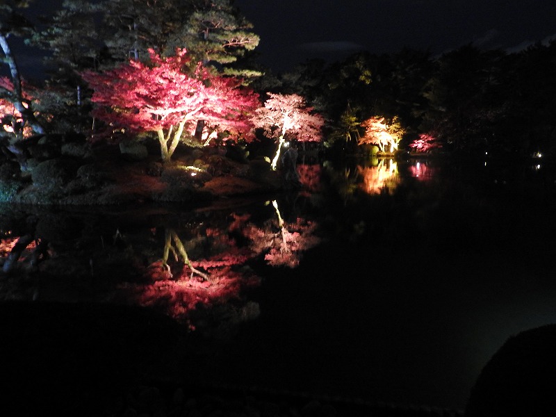24日から25日、金沢を旅しました。新幹線ができてからまだ行っていませんでした。始発のかがやき501号で大宮から乗車。停車駅は何と、長野、富山、その次が金沢です。2時間余りで到着します。早くなったものです。まだ9時前に到着。 駅を出て、近江町市場を通り、金沢城へ。さすが、加賀百万石の城でその大きさと広さに改めて驚きます。また、再建された建物で展示されていた、日本の城郭建築、木造建築の木組みの技術のすばらしさを感じることができました。ちょうど紅葉の盛りで、モミジが美しい色をしていました。そのまま、兼六園へと移動。こちらも紅葉の盛りでした。なんと、65歳以上だと、城も兼六園も入場無料!いろいろな観光地がある中で、驚きです。 兼六園は、徽軫灯籠(ことじとうろう)が名所ですが、この灯篭も紅葉の下にあり美しい。青空で風もない中、園内の紅葉と、雪つりされた松が相まって、素晴らしい景色でした。 それから、県立伝統産業工芸館、県立美術館と回りました。工芸館は、さすが金沢、といういろいろな工芸が展示されています。美術館のほうは、近く、国立近代美術館美術館の工芸館ができるとのことで、その展示もありました。 香林坊で昼食のあと、室生犀星記念館、武家屋敷、長町友禅館に寄りながら、駅前の宿に戻りました。長町友禅館はかつての友禅の作業場。加賀友禅染の行程や特徴など解説していただきました。まさに手仕事、です。一休みした後、夕方から行われる、兼六園のライトアップを見に行きました。路線バスが土日は半額の100円!。さすが観光の町です。 兼六園のライトアップは、なんと入場無料!またまたびっくり。徽軫灯籠には長い列ができていましたが。ライトアップされた紅葉が池に映る、夜の兼六園を楽しみました。土曜日に旅すると、いいこともあるわけです。 翌日は、ひがしの茶屋街、主計町茶屋街を見て、森八の菓子木型美術館に寄りました。ずらりと並ぶ200年前からの菓子の木型。そして石川県観光物産会館で、「小さな締め太鼓づくり体験」、それから城の中を通り、近江町市場近くで昼食。お土産に九谷のカップを一つ購入しました。 駅に戻り1時46分発のかがやきで金沢を離れました。富山を通るころ、剣岳はじめ北アルプスが見えますが、山頂は真っ白です。上越からは妙高や黒姫の白い姿。大宮で乗り換え白石蔵王に着いたのが18時少し前でした。4時間で帰れるとは!あまりの速さに改めて驚いた金沢の旅でした。