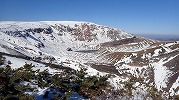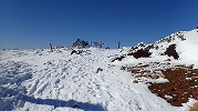 新雪の刈田岳 2018年11月27日麓から見ると、蔵王連峰の稜線は、白く雪を被っています。好天が続く本日、かよう会の皆さんと刈田岳に登ってきました。 8時40分過ぎ、すみかわスノーパークを出発、蔵王古道経由です。蔵王古道にも雪はありますが、まだ十分歩ける状態です。40分で賽の磧。さらに1時間20分で大黒天に到着。賽ノ磧からの熊野岳・五色岳・刈田岳はいつもより大きく見えました。 大黒天からの急登も雪を被っており、いつもの階段より歩きやすく感じました。1時間で刈田岳山頂。途中から、御釜も見えています。湖面は濃い緑で、わずかにさざ波が見えますが、凍結も時間の問題のようです。来年の春まで緑の湖面を見ることはできません。山頂には、エビのしっぽが付き、樹氷の予備軍ですが、まだでき始め。遠くには、吾妻連峰・飯豊連峰・朝日連峰が見えています。 避難小屋で昼食をとりましたが、さすがに気温は低い。正午下山ですが、雪があるので歩きやすい。大黒天からは、観光道路経由で下山しました。一日中快晴で風も無い、登山日和でした。雪は例年と比べ遅いようです。