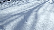 雪降り 2018年12月28日年末恒例となったような寒波の来襲とともに、10㎝ほど雪が積もりました。日中は雪が舞う程度でしたが、雪景色になりました。 車にもずっしり積もっています。地上には、何やら動物の足跡。キツネのようです。