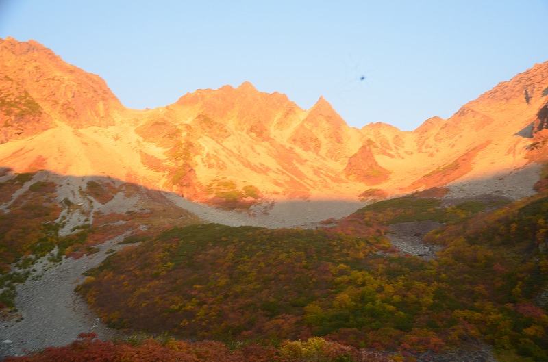 涸沢の紅葉 2019年10月7-9日「日本一の紅葉」と言われる、穂高岳涸沢の紅葉を眺めに行く旅をしました。ここの紅葉は、10月第一週の終がピークと言われてきましたが、勤めを持っている身には無理な話。諦めてきました。 リタイアののち、蔵王に越してきてからは「北アルプスは遠い」を実感した日々でした。今回、この「遠い」をどれくらい遠いのか試してみました。 10月7日、始発の新幹線東京行きで、大宮に。ラッシュの中を新宿まで移動。ここであずさ7号に乗り松本へ。あずさ7号は新型車両になって、全車指定席になっていました。空いている席には、赤ランプ、近く予約客乗車は黄色ランプと、最新の予約状況の掲示です。松本着11時39分。 30分ほどの接続時間で、1番線のソバ屋で、山菜そば。コンビニでおにぎり購入。松本電鉄新島々行きに乗り、終点で上高地行きのバスに乗り換え、1時55分、上高地着。おと休割引だと、白石蔵王から松本まで、特急料金を含め10,250円、松本から2500円の13,000円でした。 上高地を出て、明神まで1時間、さらに徳沢まで1時間で今日の宿、徳沢ロッジにつきました。徳沢は何度もテントで泊まり、また通過しましたが、ロッジに泊まるのは初めて。二段ベッドの部屋に風呂付で、「山小屋」の雰囲気ではありません。1万円でした。(後で知ったが、10%の労山の割引があった。もったいない!) 翌日は雨。7時に宿を出て、1時間で横尾。横尾大橋を渡り、涸沢に向かいました。1時間余りで本谷橋、そこから2時間弱で涸沢ヒュッテ着。労山割引500円で9500円。ずぶ濡れでした。ただ紅葉は素晴らしい。着替えて今日はここまで。今回は、紅葉見物でしたが、夏だと、一日目を横尾まで歩き、2日目に北穂か奥穂に登り涸沢ヒュッテ泊もあり得ると思いました。 翌日は快晴。青空のもと、6時ころから始まるモルゲンロートを楽しみます。なかなか写真に色が出ませんが、日の当たった岸壁の赤は素晴らしいものでした。もう一日延長すれば奥穂か北穂に登れるのですが、今回は今日中に蔵王に帰る予定なので、7時過ぎに下山開始。 名残惜しいのですが、2時間で横尾、そして徳沢、明神を経て、梓川を対岸に渡り、自然研究路を河童橋まで歩くと12時着。3時発のさわやか新州号まで時間があるので、昼食をとり、ビジターセンターを見学、小梨平のキャンプ場で入浴。600円でした。 3時前にバス停に行き、バス乗車。新宿バスタまで4時間半、7,600円でした。実は、1時ころのバスで松本に行けば、もう少し早く蔵王に戻れるのですが、さわやか新州号のチケットを買ってしまったので、待つことになりました。 7時半に新宿着。大宮まで移動するのですが、夕方のラッシュ。9時10分まで時間があるので各駅停車で移動です。一番混む駅、新宿から電車に乗るのは大変です。ずいぶん田舎者になってしまった、と実感です。 9時10分発の新幹線で1時間半。10時31分に白石蔵王着。おいてあった車で11時過ぎに遠刈田に戻りました。