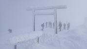 刈田岳に登る 2020年2月15日宮城蔵王ガイド協会のイベントで、刈田岳に登ってきました。登り始めは、刈田岳や熊野岳、屏風岳の頭に白い雲、これは、強い西風が山形側から吹いている印です。リフトを乗り継ぐ途中も風が強くなってきました。 中央コースに入り、ところどころブッシュの出た道を進みました。1時間ほどでエコーラインの縞ノ沢のところに出、ここからまっすぐに刈田岳に取り付きます。途中、大黒天からの夏道に合流し、急坂を登ります。1時間ほどで避難小屋へ。このとき、時折ガスが晴れて、山頂が見えるようになりましたが、依然ガスの中。山頂に行くと、なんと3日前は樹氷に覆われていた鳥居が、氷が落ちていました。この2日間気温が高く、雨だったようです。神社には樹氷が付いています。また杭にも樹氷が付いています。御釜は見えません。 樹氷原まで降りると、少し視界がよくなっていました。ここで昼食。樹氷のついたアオモリトドマツからも氷が落ちで枝が見えています。あまり風も無く、次第にガスが切れて南蔵王が見えてきました。枯れたアオモリトドマツは、尖ってやせたモンスターになっています。 ふかふかの雪の上を下りてエコーラインに出、縞ノ沢まで歩きます。ここから中央コースを戻り、後見ゲレンデの脇を下りて、休憩所で一休み。2時半にすみかわスノーパークに戻ってきました。天気は回復したものの、厳冬期とは思えない一日でした。
