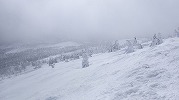 刈田岳めざすも、強風で撤退 2020年2月11日今年は雪が少なく、1月は、すみかわスノーパークから刈田岳をめざす中央コースが藪が出ている、という話に、行く気をなくしていました。2月になり、通れるようになったとの話を聞き、刈田岳めざしてきました。 中央コースは、ところどころ藪が出ていますが、何とか通れました。が問題は風。時折吹き付ける西風のひどいこと。ブリザード・地吹雪です。樹林帯にいるうちはまだましですが、木がなくなると、ひどい。ということで、縞の沢手前で撤退。雪は少なく、エコーラインのガードレールが見えていました。 カメラも凍り付き、クリアな写真になりませんでした。