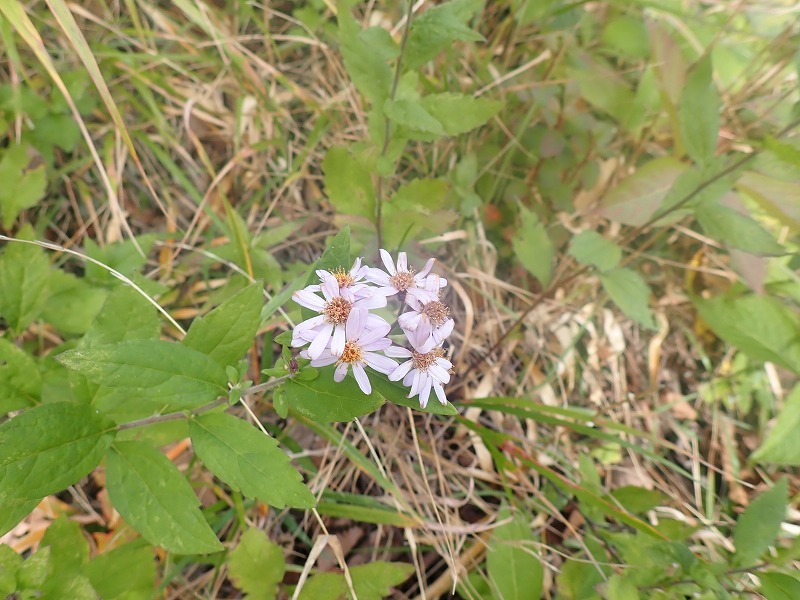 青麻山西面の登山道を歩く 2021年10月11日ことりはうすの知人のリクエストで、青麻山の西面の登山道を歩きました。 北原尾登山道から入って、遠白分岐、七五六山、展望台で昼食の後、遠白分岐を経て、高萩分岐~高倉山~パラコース登山口と歩きました。 天気晴天、少し暑いくらいでした。いたるところに秋の気配。 アケビやら、トウヒレン、ツクバネ、リンドウ、サラシナショウマ、センブリ、オヤマボクチ、サルナシなど色々見られました。 パラコースは今年夏、人が入ってないせいで草ぼうぼう。草刈りが必要でした。