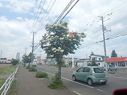 日高山脈を一回り <北海道の旅3> 2022年6月27日今日は、太平洋岸の街広尾から内陸の帯広を経由して、日勝峠を越え南千歳を経由し苫小牧、そして登別泊と、日高山脈をぐるりと回る移動日です。 朝、宿近くのバス停で帯広行きのバスを待ちます。何もないバス停で日に照らされて待って、バスに乗り込むと突然の雨。危機一髪でした。 バスは2時間21分かけて帯広駅へ。ここはかつては、鉄道広尾線があったところです。十勝平野の中を進みます。この線には、「幸福」と「愛国」という駅があり、この2つを結ぶ切符は有名でした。今でも駅跡は残っているようです。途中、白い大きな花をつけた街路樹がありましたが、何か不明。 ようやく帯広に着きました。この地方の最大の都市です。買い物をして特急電車に乗り込みます。 日勝峠を越えて南千歳へ。この線路は、両側に獣除けのネットが張られています。途中、急ブレーキをかけましたが、エゾジカが横切っていきました。 南千歳からは函館行きの特急。苫小牧で日高山脈を一周したことになります。 ウポポイは今日は月曜日で休み。そこで今夜は登別で降りて、白老の虎杖浜温泉で泊まり。明日白老のウポポイを見て戻る予定です。宿からは海が見え、庭には大きなフキがありました