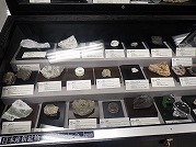 秋田・秋田大学鉱業博物館 2023年1月16日糸魚川を出て、今日は同じ日本海側の秋田を訪ねます。行き先は、秋田大学大学院国際資源学研究科付属鉱業博物館。この大学は、かつて日本で唯一の鉱山学部があった大学。高校を卒業するとき、この大学の学部があることを知りましたが、縁もなくすましてしまいました。蔵王に来て、この学校を卒業した方と知り合いになり、関心を持ちました。 1910年の秋田鉱山専門学校の創設から100年以上地質・鉱山の専門研究をしてきた学校です。その博物館も、2万点を越える貴重な標本(パンフレットによる)を持つそうで、地質・鉱物・岩石に特化した博物館です。これまで、行ってみたいと思っていましたが、この度ついに実現しました。 糸魚川から始発の新幹線はくたか、大宮でこまちに乗り継ぎ、920㎞の距離を走り、12時半に秋田に到着します。オトキュウ切符ならではのぜいたくです。ただし、糸魚川~妙高高原はJR西なので切符が必要です。 糸魚川を出ると周りは雪景色。それが関東平野に近づくと雪はありません。盛岡付近で雪。山を越えて秋田に行くところでは大雪と、日本の冬の天気を実感します。秋田駅は、竿灯となまはげ、秋田犬がお出迎え。 駅からバスで10分ほどで鉱業博物館入口。秋田大学の、少し坂を上った見晴らしのいいところに博物館があります。3階建の丸い建物。庭に鉱業関係の展示物や岩石標本があります。入場料は100円。荷物を預かってもらって、見学開始。 1階は鉱物。知っているものが少ないくらい、大量のいろいろな標本があります。鉱物を金属と結合した物で分類することを知りました。大半は日本産の標本ですが、外国のものもあります。色といい形といい、見あきません。蛍光鉱物や条痕色、硬度標本、結晶見本などの展示。サヌカイトの木琴(?)もありました。一等重力点という基準点も初めて見ました。 2階は、岩石や化石や生命史。岩石標本が大きく迫力があります。化石も多数あります。秋田の成り立ちの展示は大陸からの分離から始まる秋田の鉱物の歴史でした。CTによる岩石・化石の3D画像は初めて見ました。 3階は鉱山についての展示。実際の鉱山で使われていたものが展示されていました。また、坑内の模型もありましたが珍しいものだそうです。元素の周期律表の金属元素が実物展示されているのも初めてです。 あっという間に2時間ほどが過ぎ、退出しました。基礎知識があればもっと楽しめたと思いますが十分満足しました。少し知識をつけて再訪したいと思います。 秋田駅まで戻り、宿に入りました。秋田駅は、何度も来ているのですが、どんどん近代化されていて目を見張る限りです。