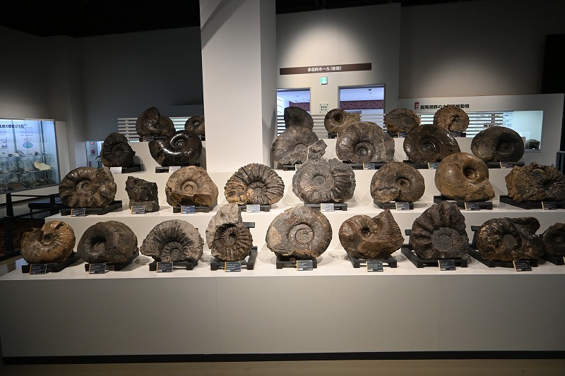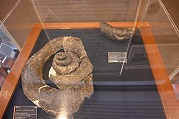 北海道の旅(3) 2023年12月5日今日は、三笠ジオパークの拠点施設、三笠市立博物館を見に行きます。 このジオパークは、「さあ行こう!一億年時間旅行へ」というフレーズでアンモナイトはじめ一億年前の生命の痕跡、石炭という大地の遺産の恩恵を受けてきたこの町の様々なものを取り上げています。言ってしまうと、アンモナイトと石炭のジオパークです。 この博物館は、幾春別という町のはずれに立っています。バス停より7分、雪の道を進んでいくと大きな看板があり、その右側に立派な建物が見えてきます。入館料450円、この時期のことで、私とほかにもう一組いただけでした。 第一展示室、ここにはずらりと並んだアンモナイトが圧巻です。アンモナイトがイカやタコの仲間、頭足類で、かつてカレドニアの水族館で見たオウムガイと似ていることは知っていましたが、中生代に長きにわたり繁殖し、いろいろな種類に分類されていることを初めて知りました。また、陸上と同じように大量絶滅が何度もあったそうです。 ここには、同時代の恐竜の化石も出ていて、アロサウルスの骨格模型や、エゾミカサリュウの化石など展示されています。 面白かったのは、中生代スコープといいう展示で、見るとその中のアンモナイトや恐竜が動いている、というものです。 第二展示室からは、石炭をテーマにしたもので、炭鉱のくらしなどが展示されています。また、意外だったのが、明治にできた空知集治監という刑務所の監獄の走りのようなもので、囚人を北海道開拓の労働力として使っていたそうです。 なかなか面白い博物館ですが、残念だったのが、野外博物館が雪で閉鎖され見れなかったことです。パンフレットによると、森林鉄道の線路跡に、ジオ的に興味深いサイトが次々とあるようです。ぜひ、雪のない時期に来たいものです。 12時のバスで岩見沢に出て、札幌を経由して、次の洞爺湖有珠山にある、洞爺湖温泉に移動しました。緯度が高いので4時を過ぎると暗くなります。